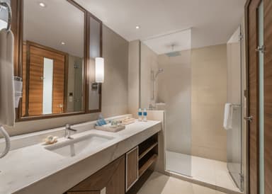 프리미어 객실은 야외 식사 공간과 수영장 전망을 갖춘 넓은 베란다를 자랑하며, 푹신한 소파 또는 다이닝 세트가 있는 여유로운 휴식 공간과 샤워 시설과 욕조가 분리된 고급스러운 욕실을 갖추고 있어 한층 더 여유롭고 쾌적한 시간을 보낼 수 있습니다.