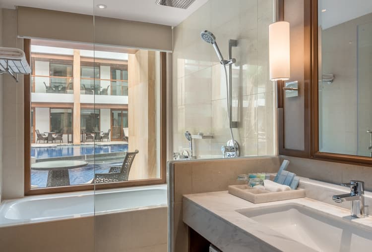 프리미어 풀억세스 객실은 수영장과 바로 연결되는 넓은 베란다를 갖추고 있으며, 야외 식사 세트와 선 라운저, 푹신한 소파가 있는 휴식 공간, 샤워 시설과 욕조가 분리된 고급스러운 욕실, 커피 머신과 헤난 전용 목욕가운 등으로 프리미엄한 휴식을 제공합니다.